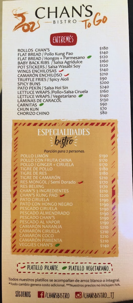 Welcome to Chan's Bistro, the ultimate destination for Asian cuisine in Tijuana! Nestled at Av. Jalisco 2511, this modern bistro captivates with its exquisite variety of rice dishes, including the flavorful Arroz Cantones and sumptuous Arroz Camaron, all made with fresh ingredients. Priced from MX$150 to MX$380, there's something for every palate.